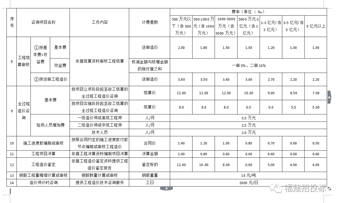 一、本收费标准根据我省工程造价咨询市场行情,按照咨询内容分别列出收费标准,作为市场各方主体确定咨询费的参考,实际收费标准在建设工程咨询合同中约定。